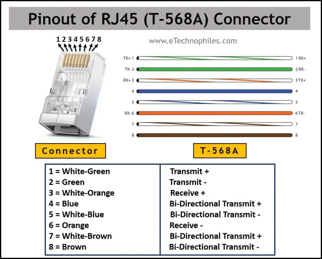 Ethernet Cable Wiring Diagram With Color Code For Cat5 Cat6 ETechnoG