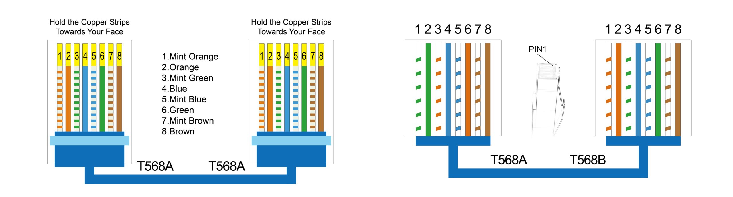 Ethernet RJ45 Color Code With Pinout T568A T568B