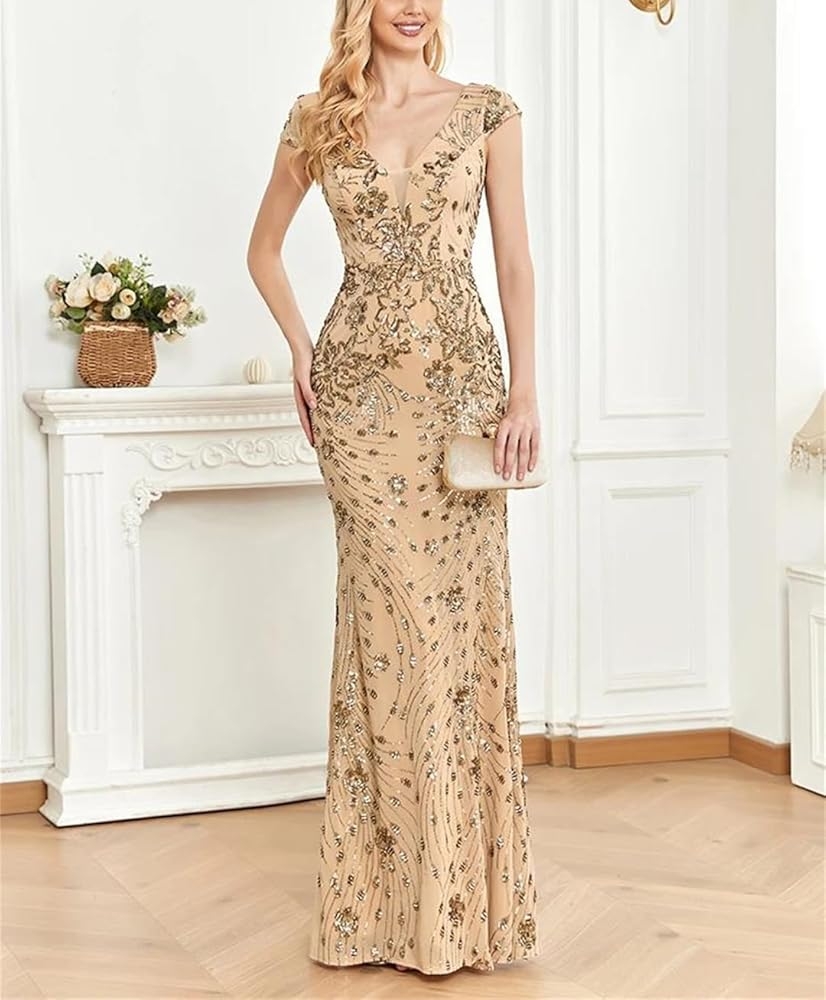 Amazon Elegant Champagne Evening Dress For Women Long Luxury Mermaid Formal Sequins Prom Wedding Party Cocktail Dresses Burgundy S Clothing Shoes U0026 Jewelry