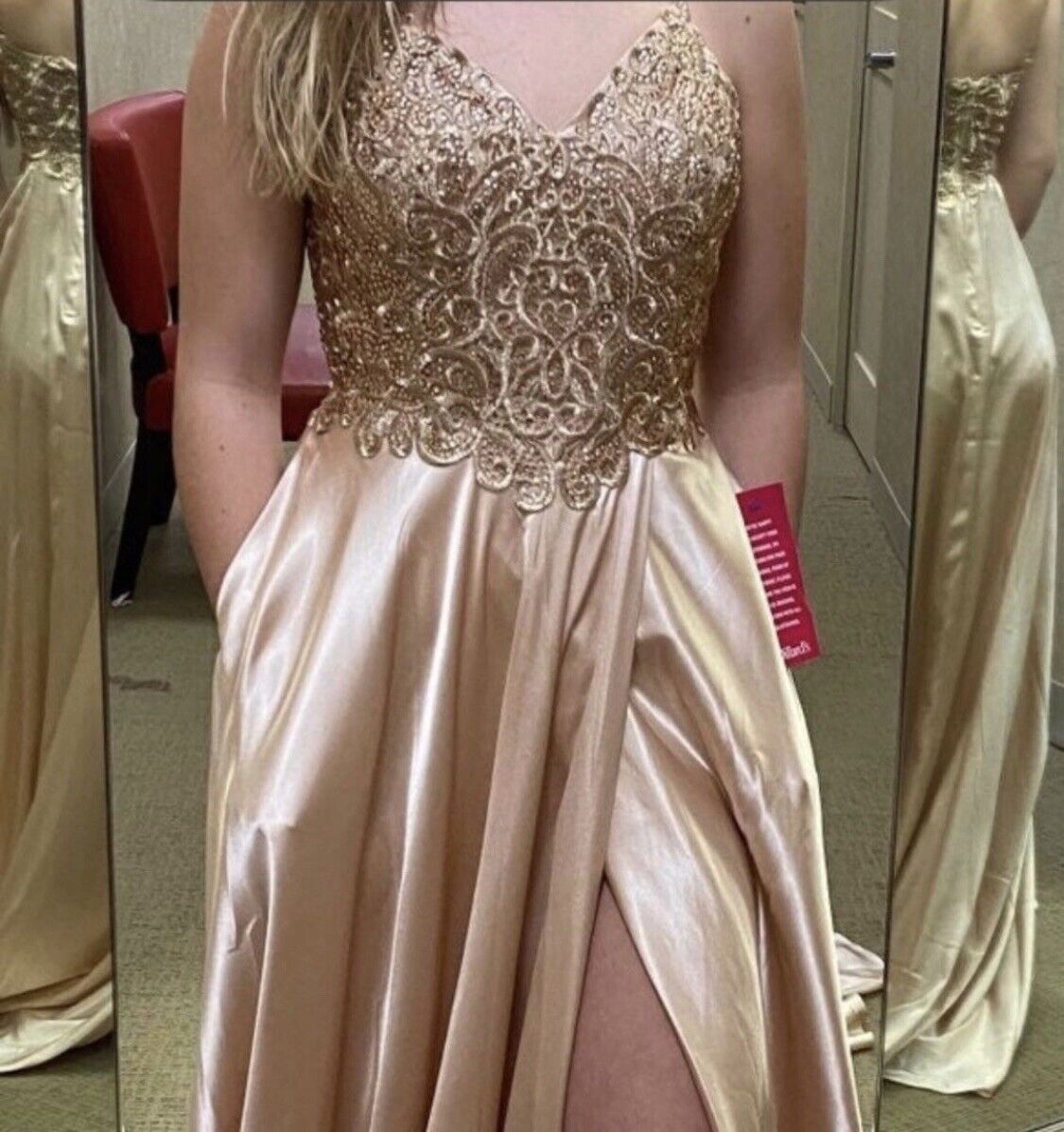 Whether you’re attending a wedding, prom, gala, or any other formal event, a champagne colored dress is sure to make a statement. The neutral tone pairs well with a variety of accessories and complements all skin tones, making it a flattering choice for many.