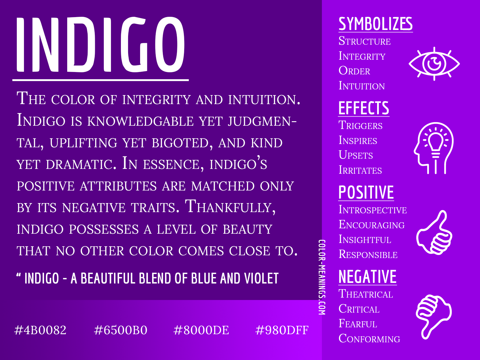 In conclusion, the color indigo is a beautiful and versatile hue that has been cherished for centuries. With its deep and rich tones, indigo adds a touch of elegance and sophistication to any design. Whether used in traditional textiles or modern artwork, indigo is a color that is sure to stand the test of time.