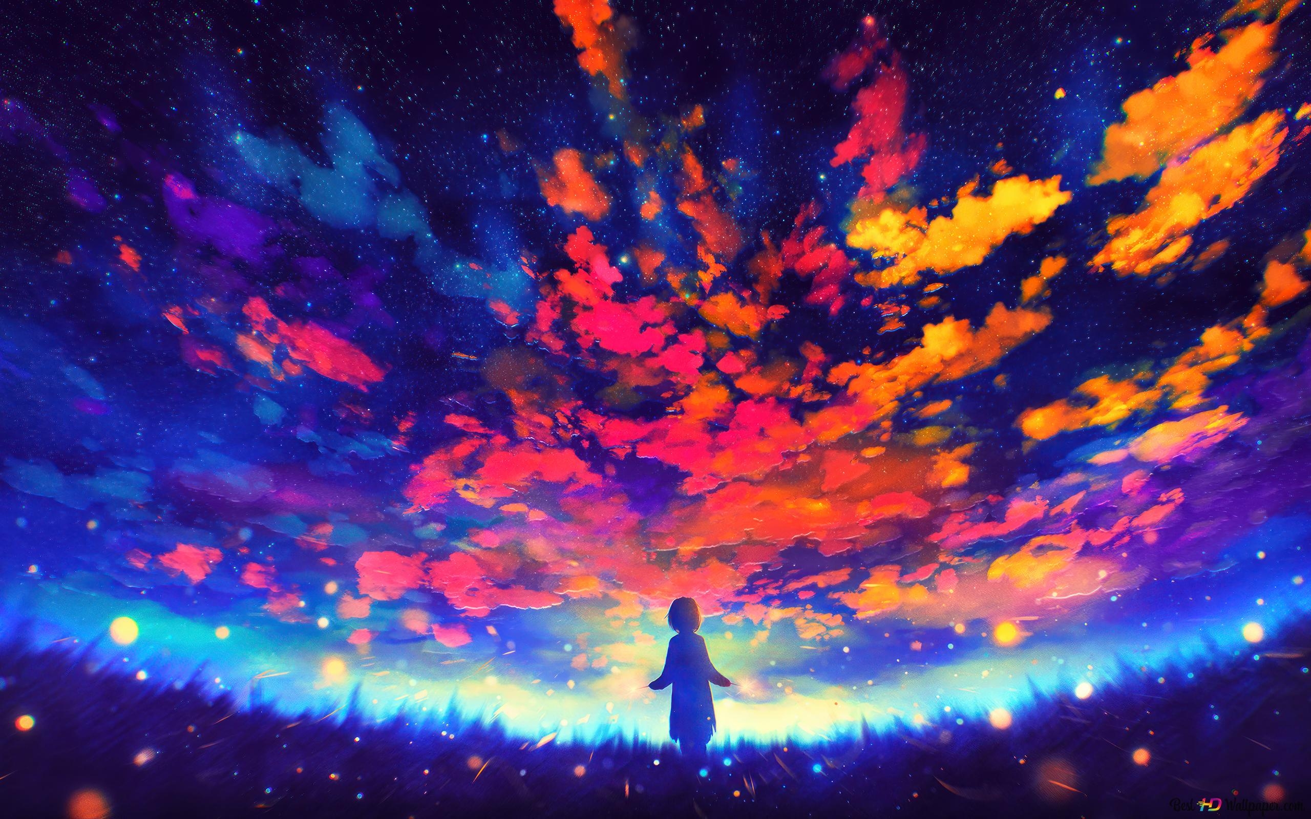 Colorful Sky Anime Scenery 4K Wallpaper Download
