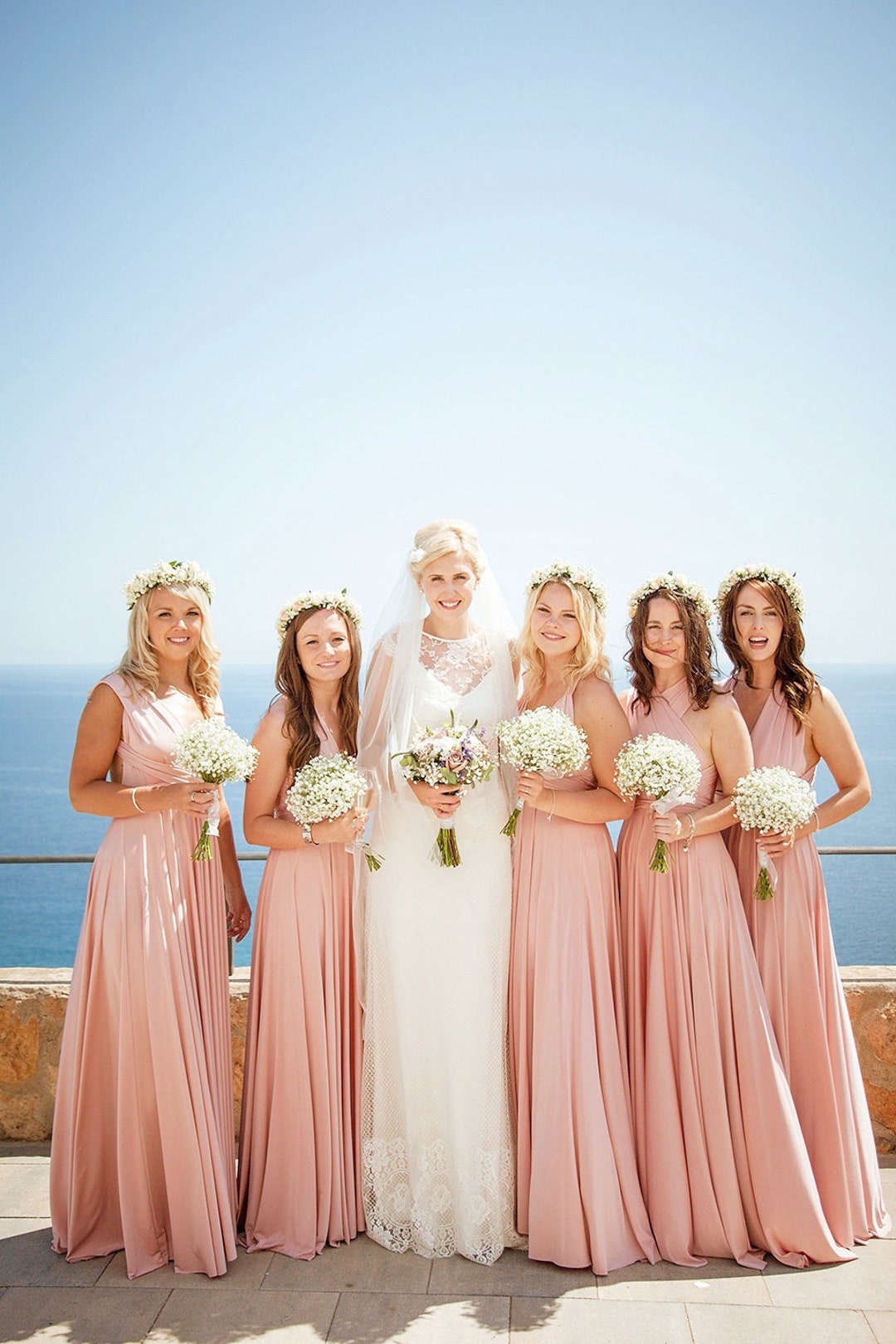 Long short Blush Bridesmaid Dress Convertible Bridesmaid Dress