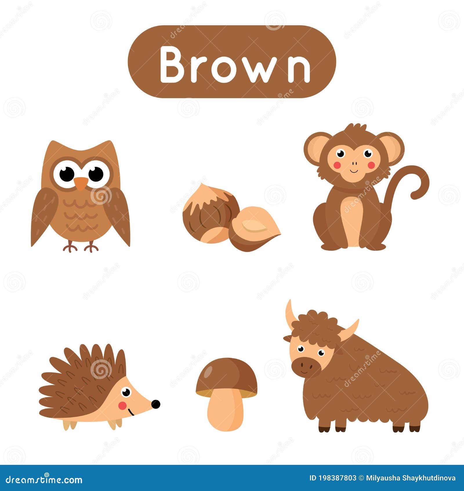 Learning Colors Brown Color Flashcard For Kids Cute Cartoon Characters Picture Set For Preschoolers Education Worksheet Vector Illustration Stock Vector Image U0026 Art Alamy