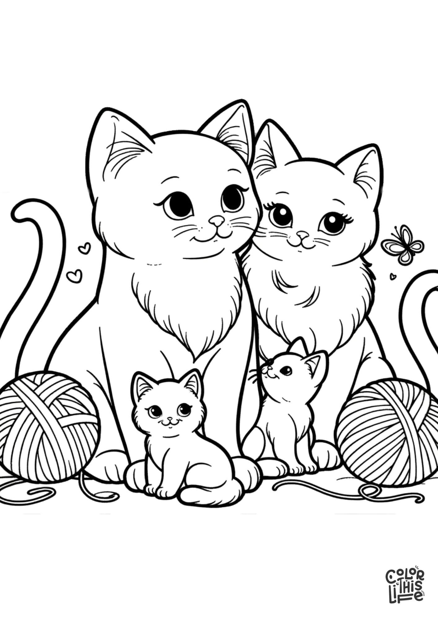 Cat Family Coloring Page Color This Life