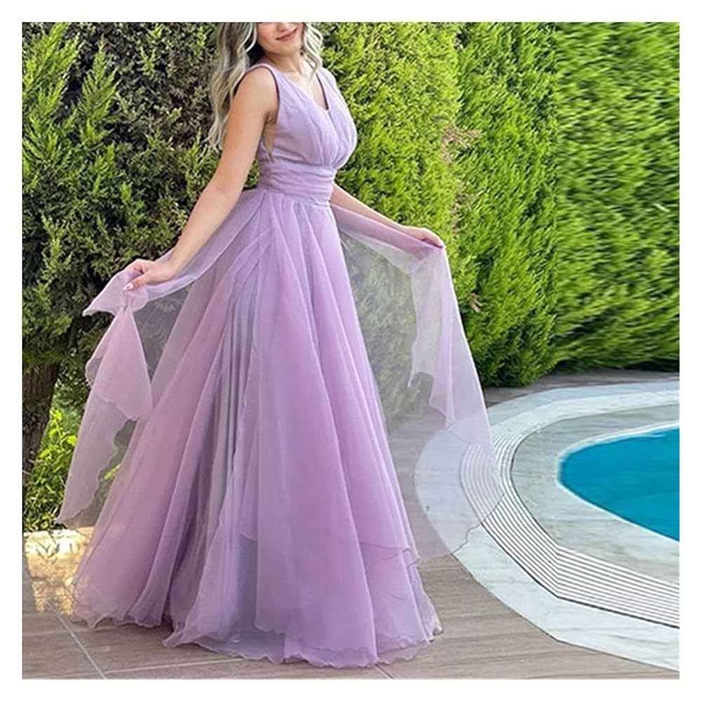 ZHCWT Simple V Neck Light Purple Chiffon Boho Prom Dresses Tiered Backless Fairy Sleeveless Evening Party Gowns Robes De Soir e Color C Size 16W Buy Online At Best Price In UAE