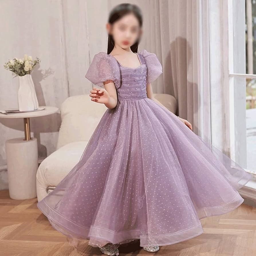 ZYZMH Light Purple Girls Princess Long Dress Gown New Beaded Dress Wedding Party Dress Color D Size 9T Amazon co uk Fashion