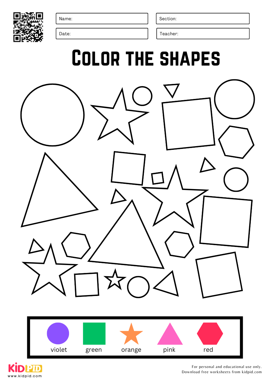 Shapes and colors are important concepts for young children to learn as they are foundational for understanding the world around them. A shapes colors worksheet is a fun and engaging way to help children practice identifying and naming different shapes and colors.